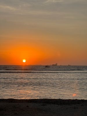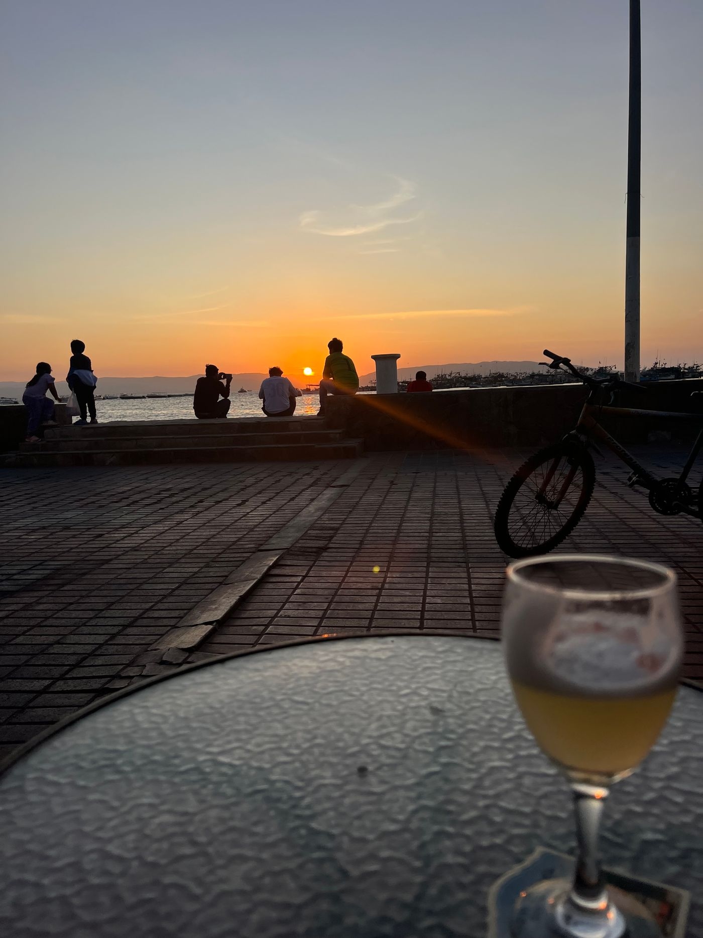 Zum Baden kamen wir allerdings auch noch am Playa la Mina. Die Strömung war ziemlich stark, aber wir sind nur vorne geblieben und waren vorsichtig. Wir hatten etwas Zeit in der Sonne zu brutzeln, bevor uns der Schatten von der einen Seite und die Flut von der anderen einzuholen versuchte. Nach der Tour sind wir noch etwas durch Paracas geschlendert und haben am Meer einen Laden mit Bitburger Schirmen gefunden. Dort haben wir dann Pisco Sour getrunken mit Blick aufs Meer beim Sonnenuntergang.