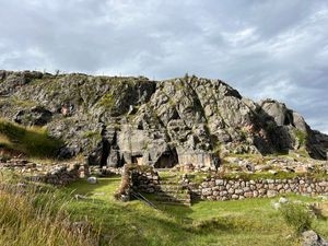 Wir sind dann zuerst zum Devil‘s Balcony geritten, bzw. das letzte Stück gegangen, haben vom Balkon runter geguckt und dann ein paar Snacks gegessen, die uns zur Verfügung gestellt wurden. Danach sind wir weiter geritten zum Mondtempel, den ich interessant fand, auch wenn ich ihn mir etwas anders vorgestellt habe. Ein großer Stein mit Stufen und Höhlen. Auf den Stufen haben die Inkas Lamas für ihre Götter geopfert. In den Höhlen Zeremonien abgehalten und ihre Toten in Embryohaltung aufgebahrt, da sie an Reinkarnation glaubten und so der tote Mensch in der gleichen Haltung wiedergeboren werden konnte.